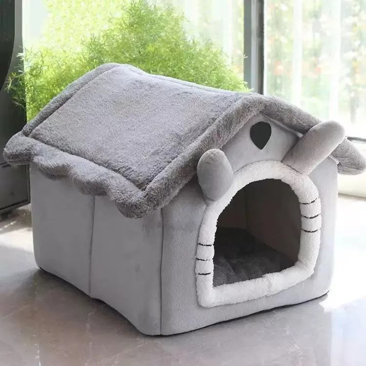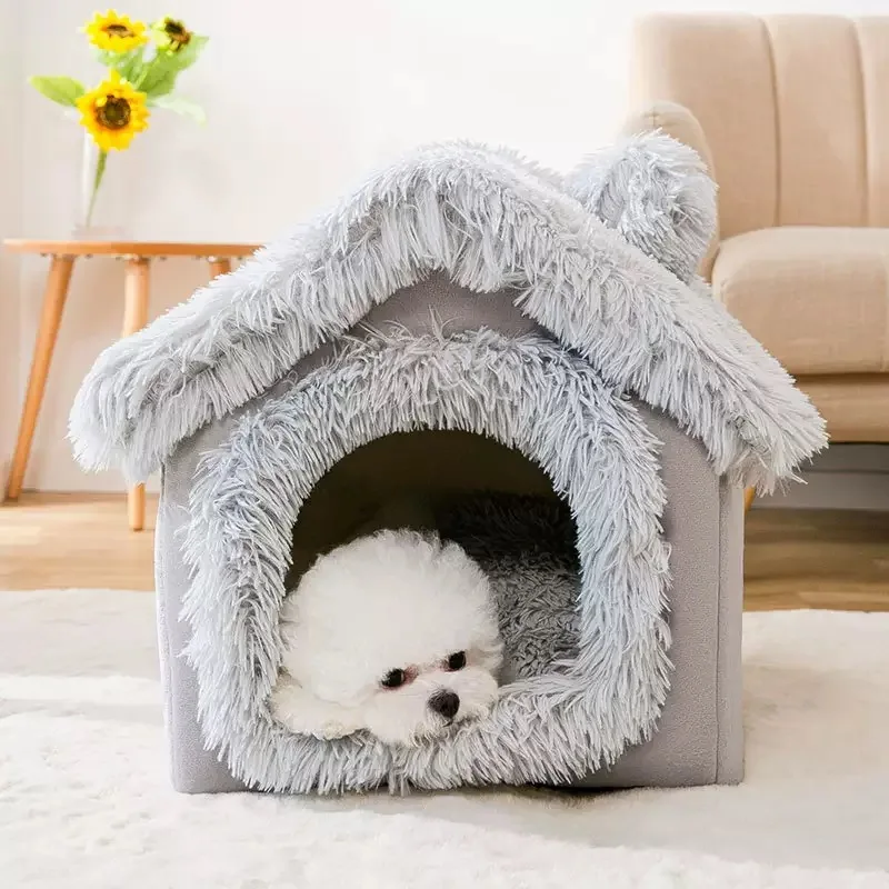 Foldable Dog & Cat House Bed – Warm Indoor Kennel with Cushion