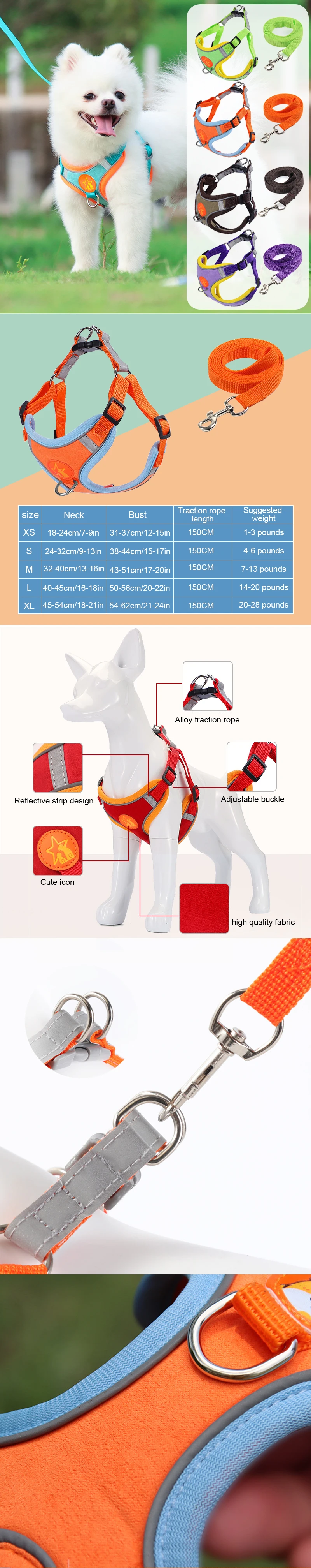 Walk your pet safely and comfortably with this adjustable dog harness and leash set, designed for small and medium dogs. Lightweight, breathable, and secure, it ensures control and comfort during daily walks.
