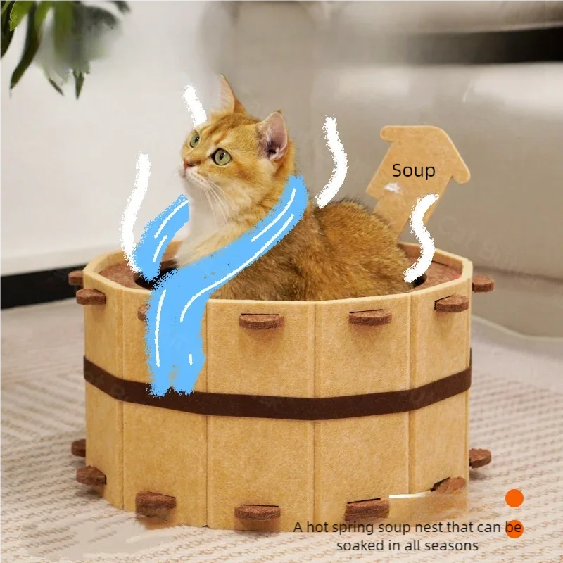 Give your cat a cozy retreat with our Four Seasons Felt Cat House. Designed in a fun bathtub style, this semi-enclosed bed provides warmth, comfort, and security for cats while saving space in your home. Made from durable felt with sturdy construction, it also helps cats sharpen their claws naturally. Perfect for small and medium cats, this stylish cat bed is ideal for year-round use.