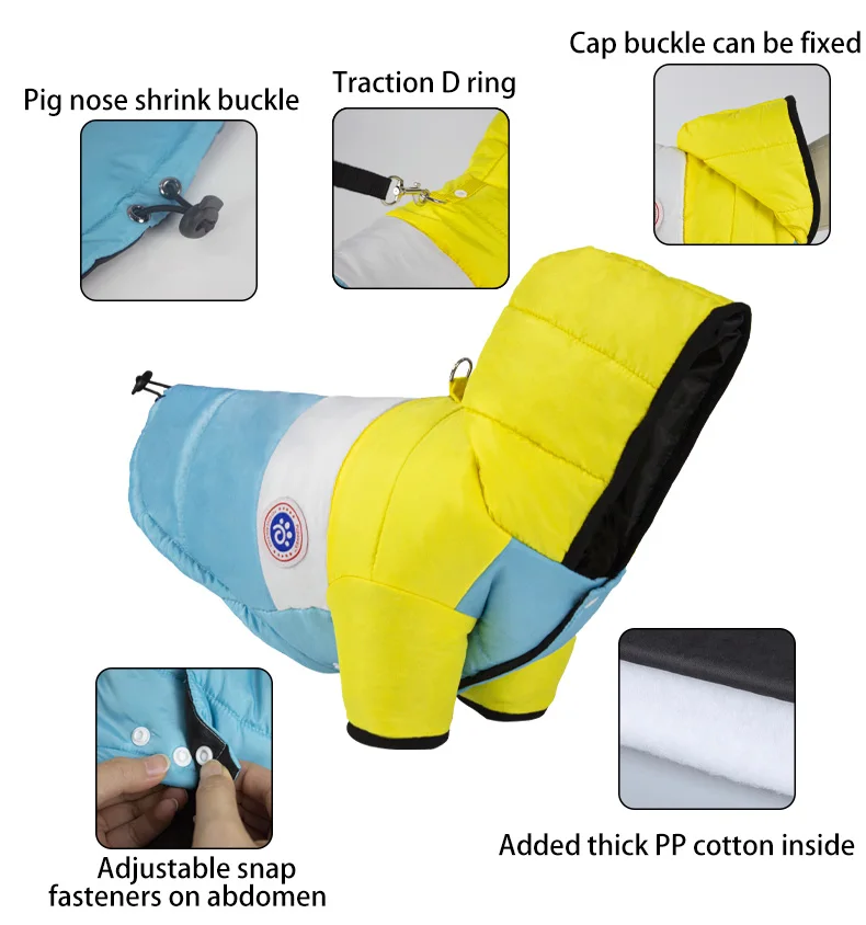Keep your pup cozy all winter long with our Thick Winter Dog Onesie. Made from soft fleece and padded with warm cotton, this full-body outfit protects against cold, wind, and snow. Designed for small dogs like Shih Tzu, Chihuahua, and Yorkshire Terrier, it offers comfort and style in one. Available in multiple colors (blue, coffee, orange, pink), it’s perfect for walks, outdoor play, and winter adventures.