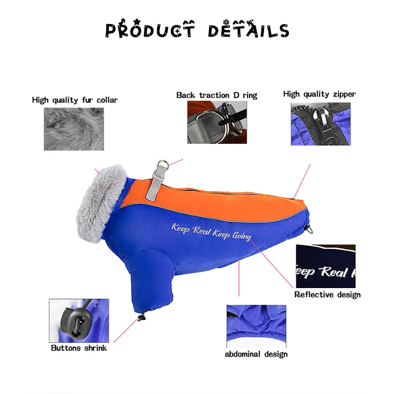Winter Dog Jacket with Fur Collar – Waterproof Warm Coat