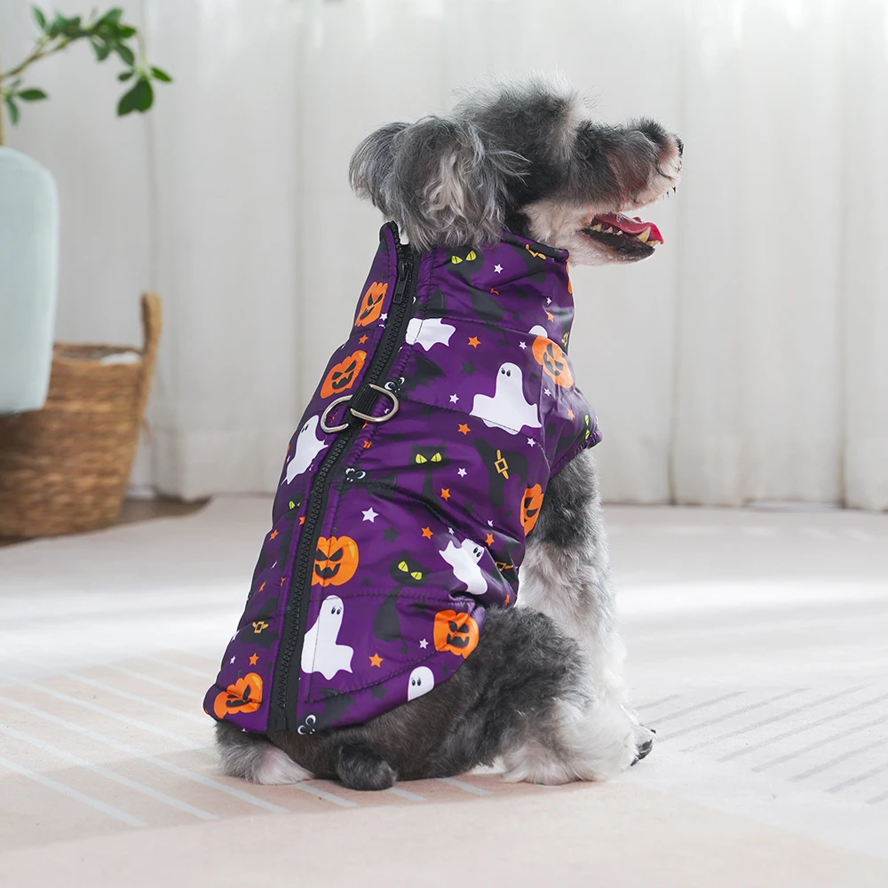 Dress your furry friend in style with this Halloween-themed winter dog jacket. Perfect for small and medium dogs, this coat provides warmth, comfort, and a fun look for seasonal parties or outdoor walks.